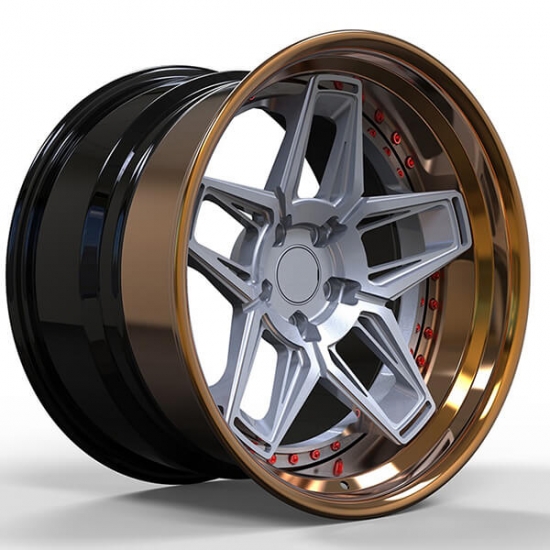 This deep dish wheels is 3-piece forged wheel model, black and bronze rim barrel and grey hup cap, our available size 18 19 20 21 22 and 24 inch.