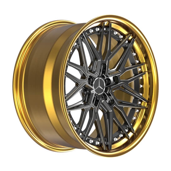 This mercedes cls wheels is 2-piece forged model , brushed golden rim barrel and brushed black spoke, staggered spoke. wheels diameter 20 inch. wheels size 20x9j front, 20×10 rear, pcd 5×112, centre bore 66.6mm.