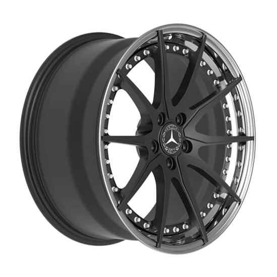 This black rims polished lip is 2-piece forged model , black rim barrel and step polished lip, flat 10 spokes. wheel diameter 19 inch. Front 19×8.5j, Rear 19×9.5j, pcd 5×112, centre bore 66.6mm, weight 12.3kg each.